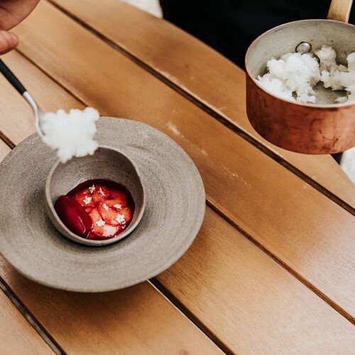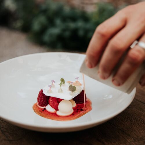 Born in South Africa and raised in New Zealand and Australia where he learnt the craft, Nick Honeyman fell in love with France and its produce following stints at Arpège and above all Astrance. In fact, it was thanks to Pascal Barbot that our globetrotter found his way to this bistro that he has gradually turned into a gourmet establishment. Exquisitely presented, his signature cuisine is a masterfully intelligent festival of emulsions and contrasting flavours. This seasonal restaurant (May-Sept) located in a picturesque village boasts a terrace overlooking the garden’s manicured lawn. In the dining room, Sina, Nick’s German wife and trained sommelière, suggests local wines, fine vintages and the occasional bottle of New Zealand wine.