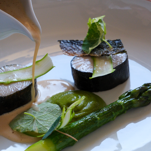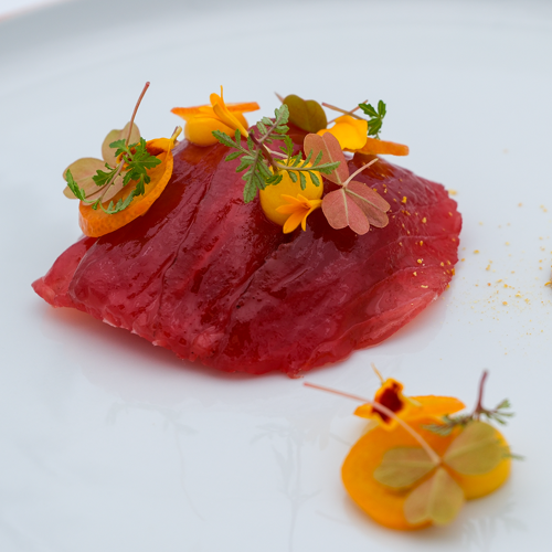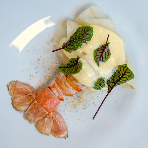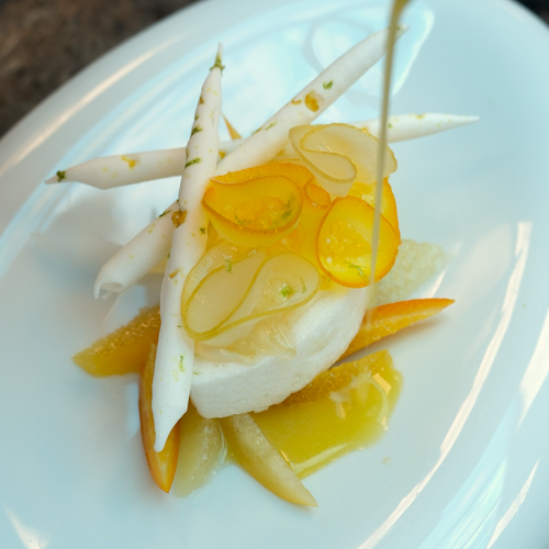 Located at the entrance to the Saint-Jean-Cap-Ferrat peninsula, looking out over the Baie des Fourmis, the Hotel Royal Riviera gracefully cultivates the timeless elegance of the Riviera. Its refined terrace, fringed by greenery, is conducive to a peaceful dinner in an intimate setting. In the kitchen, Geoffroy Szamburski composes a generous Mediterranean menu that is mindful of short supply chains: San Remo gamberoni, vegetables from Ventimiglia, fish from local small-scale fisheries… A fine tribute to ingredients from the region. To finish, Lucas Simoncini serves up an enchantingly fresh citrus dessert, accompanied by a light blancmange and a honey vinaigrette.