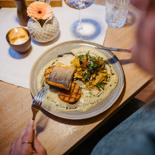 In reizvoller ruhiger Lage etwa 20 Minuten südlich von Salzburg haben sich Andrea und Robert Rübsam nach Stationen in der Spitzengastronomie 2020 den Traum vom eigenen Restaurant erfüllt. Sie setzen hier konsequent auf Saisonalität und Regionalität. 25 Produzenten aus der näheren Umgebung liefern die hochwertigen und frischen Zutaten. Daraus entstehen österreichische Klassiker mit kreativen und internationalen Einflüssen. Die Speisen werden auf einer Tafel angeschrieben - hier liest man z. B. "Gazpacho Andaluz, Paparika, Jalapeno, Croutons", "Gebeizte Forelle, Gurke, Sauerrahm, Raps" oder "Geschmorte Rindsroulade, Kartoffelpüree, Kohlrabi". Stolz ist man auf den Gastgarten - sicher einer der schönsten im Umland von Salzburg. Der herzliche, aufmerksame und professionelle Service unter der Leitung der Chefin tut ein Übriges.