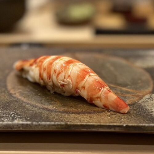 The spare interior reminds us of a tea hut, its shelves casually stocked with water jugs used in the tea ceremony. On one earthen wall, an implement used to pierce bags of rice to take samples hangs like a flower arrangement. Omakase set menus place the accent on nigiri. First up is gizzard shad, an item notoriously difficult to get right. Boiled squid, conger eel and egg follow, each accomplished in proper sushi shop fashion. Refined, no-nonsense sushi, the way it’s meant to be.