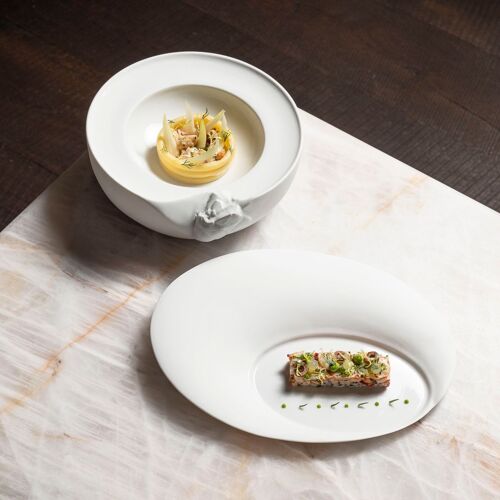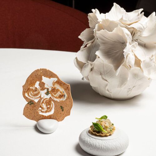 A wind of enthusiasm heralds Thijs Vervloet’s return to Tongerlo. This former doctor’s home has been entirely refurbished with alfresco dining in the garden and five deluxe guestrooms. Luxury is the bedrock of the high-end establishment from its Gallic poise and floor-to-ceiling windows that flood the interior in light to the cosily intimate drapes and made-to-measure porcelain tableware by Pieter Stockmans! A champion of the ingredient, Vervloet’s culinary signature seeks to place his classical background and training at the service of a demanding score underpinned by sensitivity and know-how. Everything is prepared on the spot, so, when he presents his emblematic dish of no less than four different versions of langoustine (including a shellfish consommé to die for!), you know that you are in for a festival of flavour. His melt-in-the-mouth suckling lamb with proper crackling and a creamy-crunchy gratin dauphinois, crisp green peas and a punchy gravy is in exactly the same delicious vein. This banquet ends on a similar high note, as your coffee is escorted by a trolley piled high with wickedly enticing sweet titbits. The variety of the à la carte menu is eminently noteworthy, as are the insightful wine-food pairings of sommelier, Tom, and Lore’s attentive service. Maison Colette has clearly puzzled and pondered over every tiny detail.