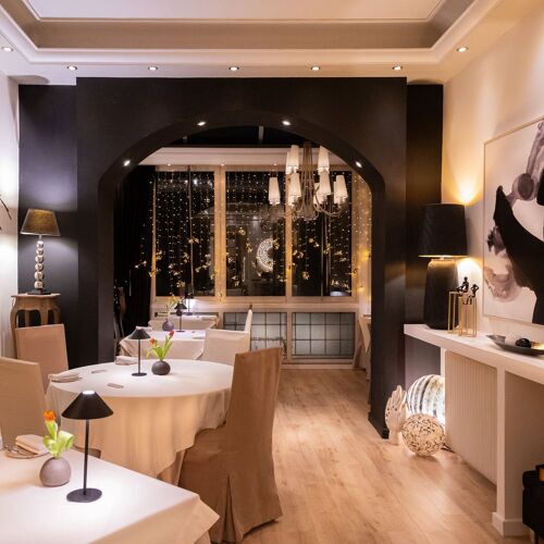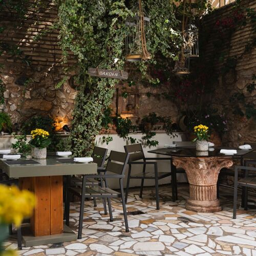 Time seems to have stood still in this beautiful restaurant occupying a neo-Classical residence from the mid 1800s, where the delightful patio, contemporary decorative features and 19C spirit come as a pleasant surprise. Here, the focus is on updated Greek cuisine presented in two menus (both with 5- or 6-course options): one entitled Earth & Sea, the other, the vegetarian-based Garden & Nature.