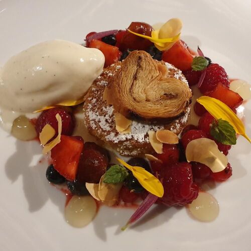 The Koch family business has virtually all of your needs covered, with its lovely accommodation on Marktplatz, terrific food and ever-obliging service. Proprietors Sabine and Jürgen Koch blend culinary classics and tradition with a modern twist, all while prioritising the use of carefully selected, fresh ingredients. They deliberately avoid frills, focusing instead on expression and flavour. Dishes such as the shoulder of bœuf de Hohenlohe confit reflect a connection to the region. However, there are also more cosmopolitan creations to choose from, such as wild prawn tartare with shellfish stock, coconut and tandoori. A four- to six-course tasting menu is available, with the option to order à la carte as well. To complement your meal, there are wines from the Tauber Valley, Franconia and Baden-Württemberg, but also from France and Italy. The setting is also captivating: a distinctive natural stone barrel vault blends seamlessly with modern elegant interior design. Tip: Head to Hohenloher Märktle and stock up on some quality ingredients to take home with you.