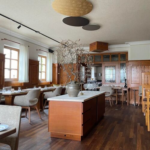 It is no wonder that this inn run by Bettina Hofmann attracts so many regulars – diners are won over by the cosy, elegantly furnished interior, as well as the exceptional food. Her appetising cuisine is regional, seasonal and dotted with modern influences, and the wines are excellent. In addition, they serve a vegetarian set menu. The service is friendly and well organised. There are also comfortable guestrooms. The eggs served at breakfast are laid by the establishment's own hens!