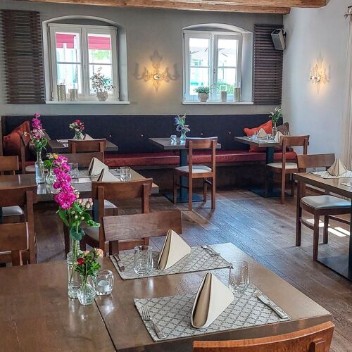 In this carefully restored former garage, it is a case of ‘olive oil not engine oil’! Enjoy your meal in a relaxed atmosphere where you can watch the cooks preparing their fresh mixture of Swabian and Mediterranean dishes in the kitchen. Simple, good value menu only at lunchtimes.