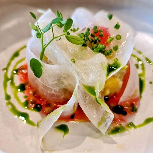 Magali and Guillaume Lempens’ colourful venue is the quintessence of comfortable and steeped in feelgood vibes, a large proportion of which are courtesy of their bistronomic cuisine. The latter includes fried cod flanked by a subtle bouillabaisse, white asparagus, homemade gnocchi and a knockout aioli mayonnaise. Big-boned, punchy sauces and impeccable technique bear witness to the experience of seasoned chef Guillaume. Rather than fussy frills, you can expect wholehearted authenticity and no-nonsense rustic fare.