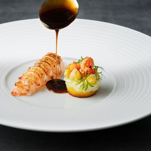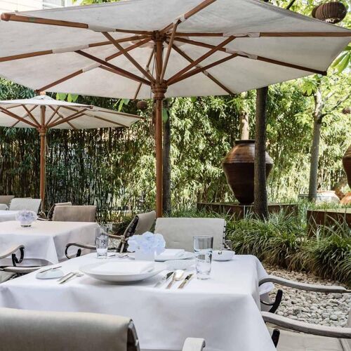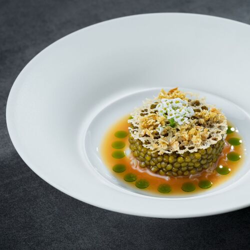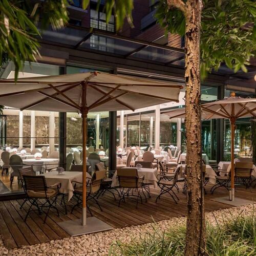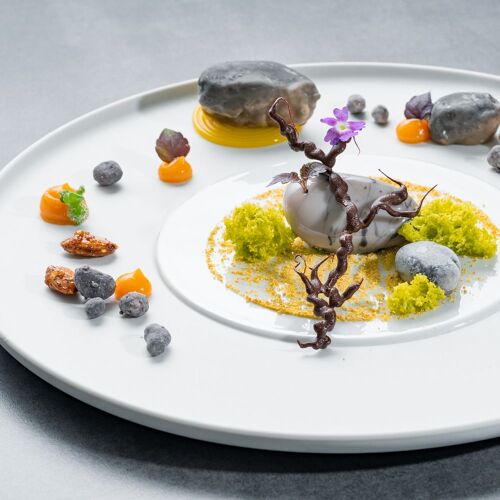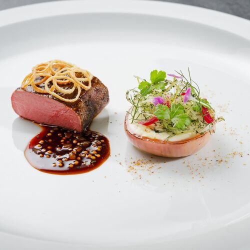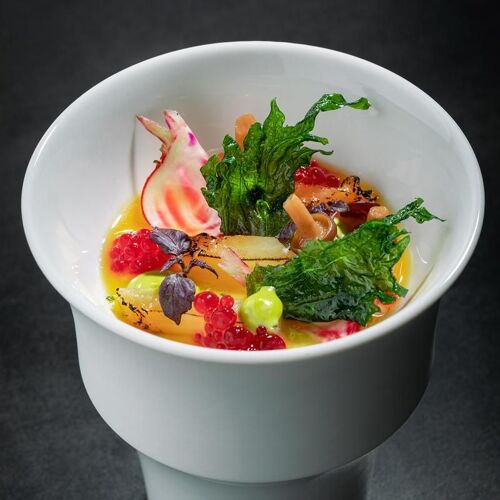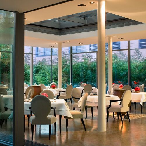 A real oasis of calm in the middle of Berlin! Up here on the fifth floor of The Mandala Hotel, diners can sit on the pleasant little terrace amid the chestnut trees and fountain – you can truly escape the hustle and bustle of the city! Even inside this chic, light and airy rooftop garden restaurant you almost feel like you're outdoors thanks to the all-round floor-to-ceiling windows. Beautiful bamboo plants give a nod to Asia. On top of the location, Facil also boasts incredible food courtesy of Michael Kempf (culinary director) and Joachim Gerner (head chef). Imbued with a healthy dose of creativity, the five- to eight-course set menu showcases fantastic ingredients and their flavours. Asian and Mediterranean influences are also skilfully incorporated. Take, for example, the charcoal-grilled Breton red mullet with artichoke, wild oregano and coriander, or the "Zen Garden", featuring a combination of apricot, yuzu and almond. Smart, professional service is the icing on the cake.