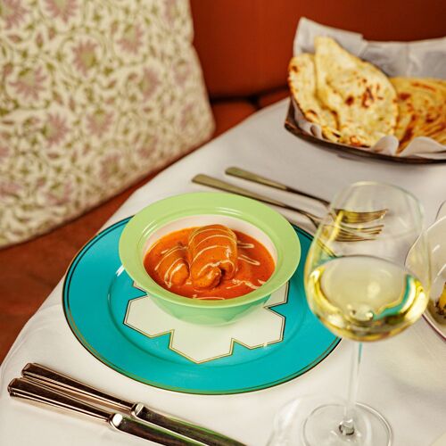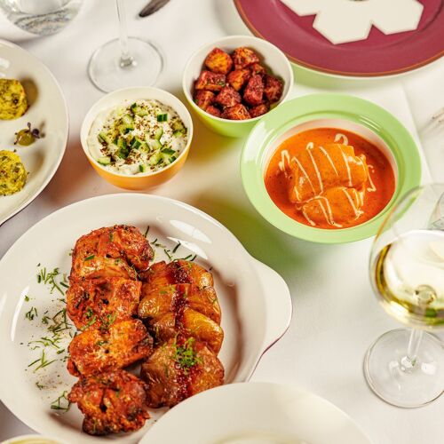 Truly authentic Indian cuisine is to be found in Berlin! The self-styled "rustic cuisine" from the north of India includes delicious curries as well as original tandoori dishes. Many ingredients are sourced from the restaurant's own organic farm (Gut Vorder Bollhagen) on the Baltic Sea. The elegant restaurant with an interior of dark wood and typical Indian colours and patterns is located not far from the Brandenburg Gate, at the back of the exclusive Hotel Adlon.