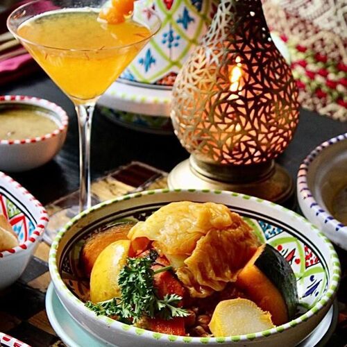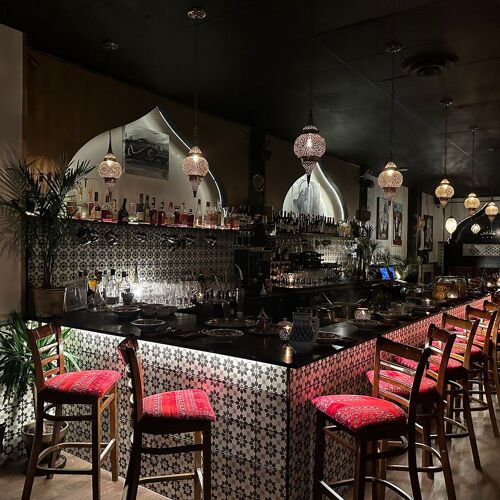 Located in one of Vancouver's hippest dining areas, Moltaqa is where Moroccan hospitality shines. The space has several nooks and crannies for seating, so even when the house is full, it still feels intimate, and warm service encourages lingering. The menu brims with tempting options. Bite into a flaky chicken pastilla, a dome-shaped phyllo pastry stuffed with shredded chicken and blanched almonds. Dusted with powdered sugar and cinnamon, it's the perfect balance of sweet and savory. The vegetarian platter delivers everything from tomato and pepper salad and eggplant filled with walnuts to a hearty, thick split pea soup and harira soup with lentils and chickpeas in a tomato base. To finish, you'll never go wrong with a square of crisp baklava.