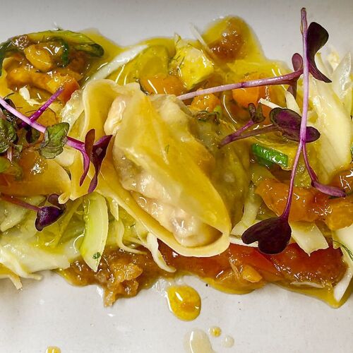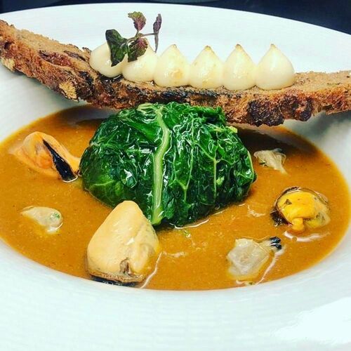 Are you familiar with the term"market bistronomy"? It is the concept created by chef Fabrice César to refer to his proposal, defined in his own words as... 'a fusion of haute cuisine and accessible prices, combining French tradition with international influences'. The centrally located restaurant, in an old stone house with several dining rooms and a charming patio-terrace, is run by the French chef together with his wife, Montse Carné, who treats all diners with the utmost care and professionalism. Here, local products with Mediterranean roots always act as a common thread, taking shape through three set menus: Bistronómico, Del Chef and Descubrimiento (from which some dishes can be enjoyed at a fixed price, like with an à la carte menu).