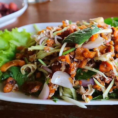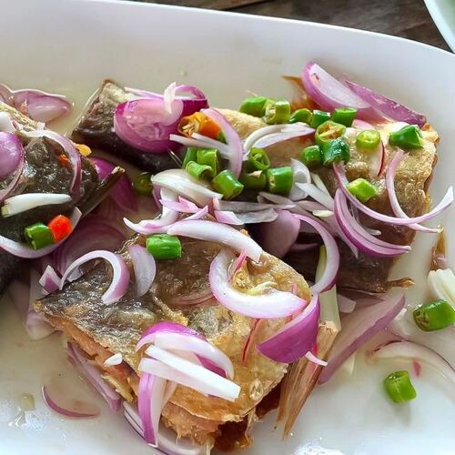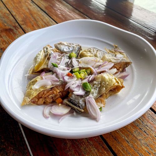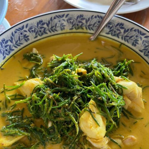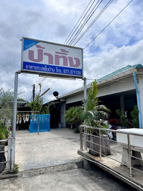 Established in 1967, Pa Ting is now run by the founder’s daughter. This simple, open-air spot overlooking the Don Sak River serves seafood rooted in local tradition. The spicy salad with salted Kulao fish bursts with fragrant Thai herbs, while the southern-style sour curry with fresh Kulao fish is spicy, rich, and boldly flavoured. You can choose the vegetables you prefer — whether it’s taro stem, coconut shoot, or bamboo shoot.