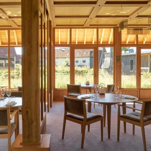 In the heart of a wooded estate, this venue sets the scene for a culinary experience that is both delicate and daring under the auspices of Pierre Frindel, formerly at Sources de Caudalie. The chef delicately crafts local and less local produce, deploying his consummate skill and subtle creativity. Each dish strikes an accomplished, harmonious balance between tradition and modernity, depicted by a breast of Bresse poultry, melt-in-the-mouth aubergine, smoked caviar and crunchy confit leg, underscored by a saffron jus, or by John Dory in nasturtium oil. Spot-on cooking, elegant plating and a dining room turned towards the countryside.