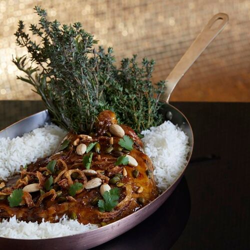 The Arabesque’s attractive decor of gold mosaics, white leather and black lacquerware conjures up pictures of the mysterious Orient, in particular Lebanon. It provides the perfect foil for a pedigree Mediterranean lineup, including hot and cold mezzes and Kibbeh Labanieh, the chef’s signature dish of meatballs, and Samak mechoui, grilled seabass with a sesame sauce. Excellent range of vegetarian dishes.