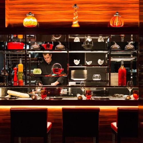 On the shores of Lake Geneva, the luxury Woodward hotel boasts a fine dining restaurant that is the epitome of classy decadence. Diners are seated in an interior, tastefully appointed in dark wood and vivid reds, at high tables or at a counter overlooking the open kitchen to sample a tasting or a vegetarian menu or one of the “small plates” available from the à la carte lineup. Service courtesy of a charming, devoted team! The lunch menu is a steal.