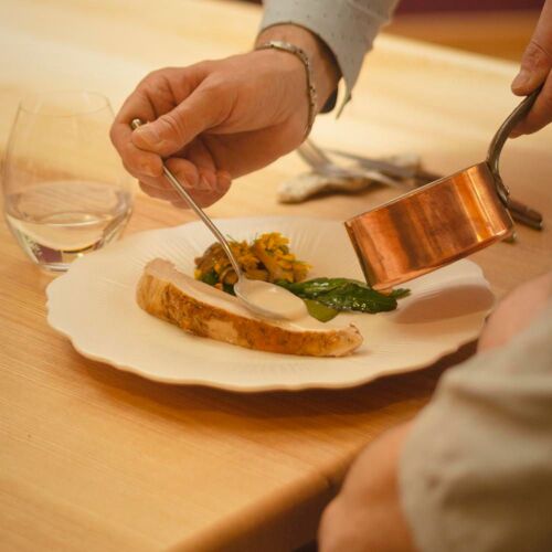 Once upon a time there was a little village known for its passion for books. What could thus be more natural than that the former printing works be turned into a mecca of fine food composed by a team of culinary authors? In a casual vibe, updated dishes are rolled out in surprise menus that star local ingredients and which respect the seasons. Bargain-priced lunchtime menu; the evening tasting menu is more ambitious.