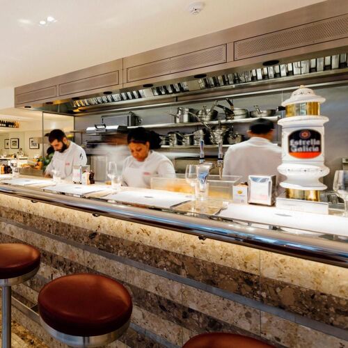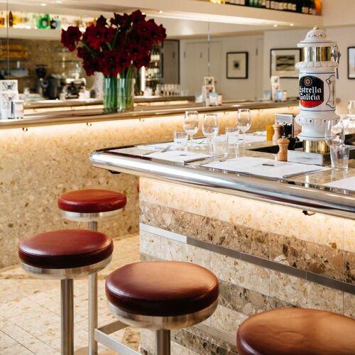 This is the only Barrafina that doesn’t take bookings – but the one that invariably boasts the best atmosphere – and you can order drinks and snacks while you wait for a seat at the handsome L-shaped counter. The tapas menu is supplemented by an appealing little blackboard of the day’s best produce, which may include mackerel, carabinero or sardines. Sharing a tortilla is always a good start and then, if you look at what your neighbours are having, you’ll find yourself ordering more and more of the colourful dishes.