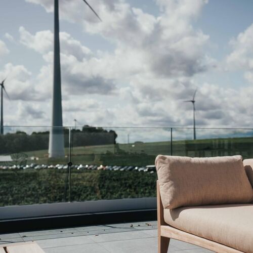 The impressive Chant d’Éole wine estate is particularly famous for its excellent sparkling wines. Benoît Neusy also offers visitors the chance of a gourmet experience in a luxurious rooftop location, where an ornamental gold-coloured tree and a glazed wine cellar immediately catch the eye. On your way into the restaurant, you will see the estate’s wines maturing in barrels.