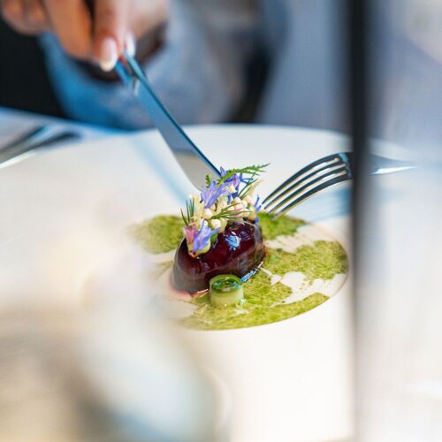 In a smart building occupying a corner plot in the Sachsenhausen district, this tastefully designed restaurant serves modern Mediterranean-inspired cuisine made with top-notch ingredients. There are two set menus, one of which is 100% vegan. The owner has some great wine recommendations up his sleeve. Pleasant terrace for summer.