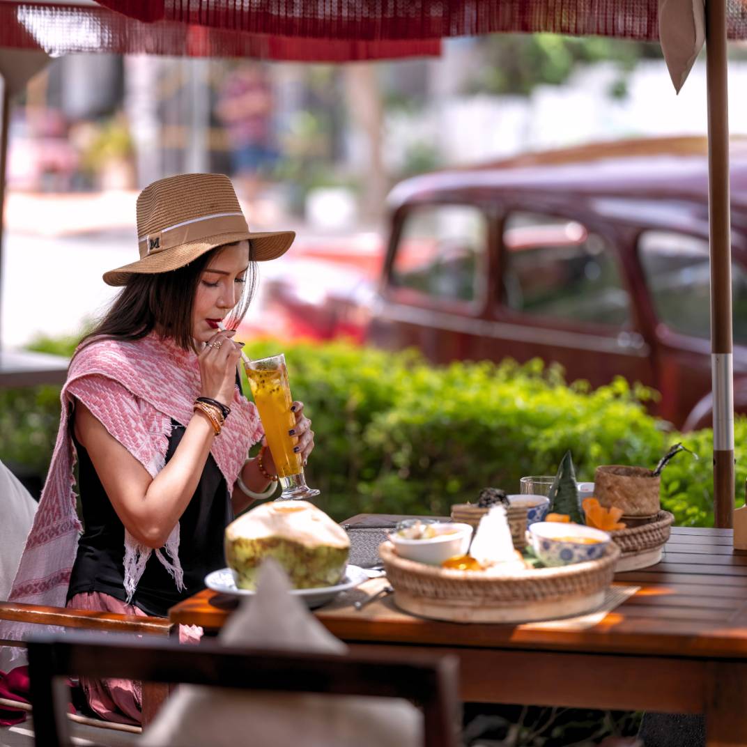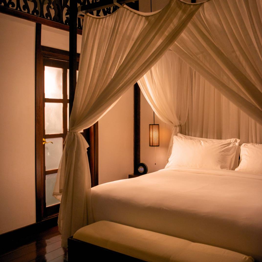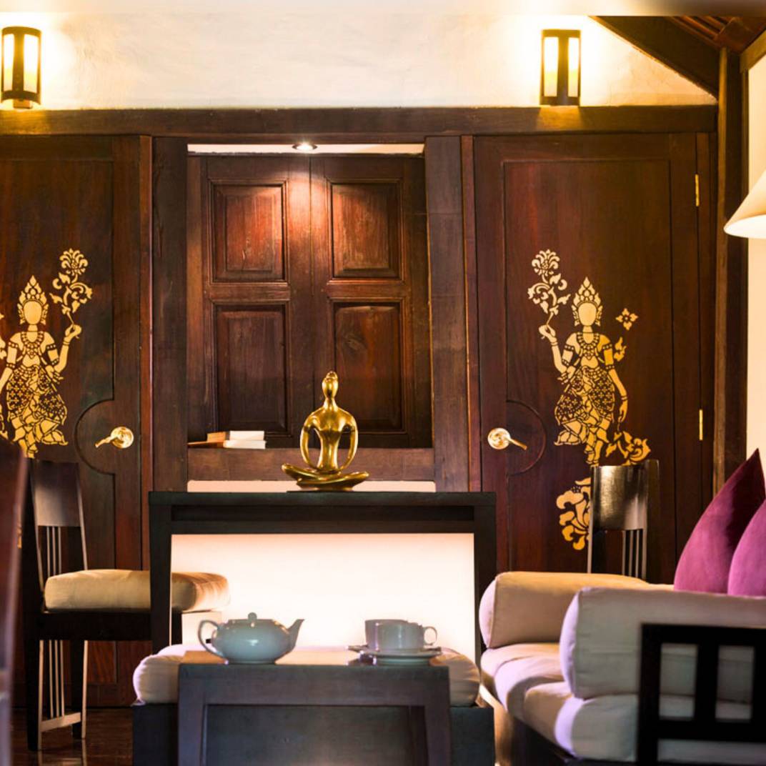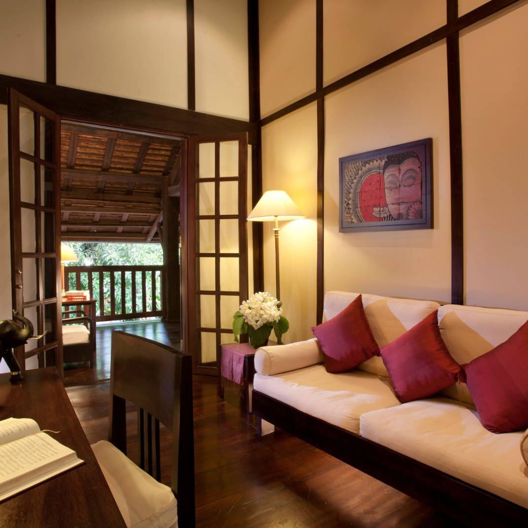 Inside, the trappings lend a palpably regal air — dark, exotic woods lend luster to the surfacing, while lofty ceilings accommodate luxurious, king-size four-posters. Traditional weavings and private terraces keep you in direct contact with the land, a resonant theme around these parts: when a riverside courtyard, an elephant park, and unreal cataracts wait just outside, you’d be a fool to opt for a cocoon instead. Put another way, they don’t bother with flat-screens here, instead offering complimentary bikes to visit local Buddhist shrines, nightly craft markets, and the famed tak bat almsgiving ceremony, featuring hundreds and hundreds of saffron-clad monks. You won’t miss the TV, we promise.