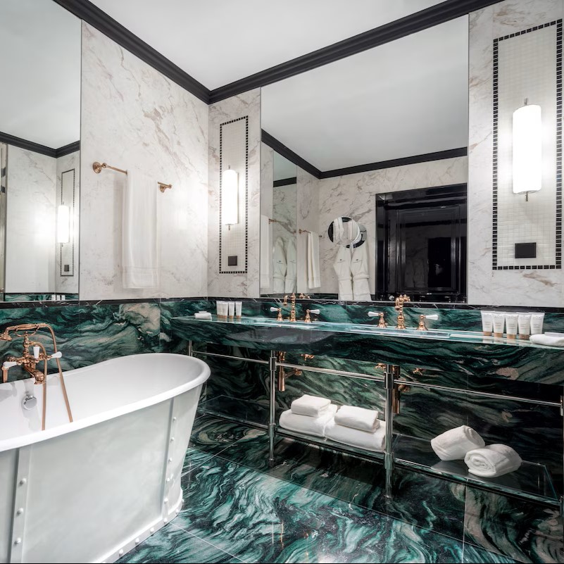 To be fair, they’re not wrong — it is indeed a Monumental Palace. It’s a 1923 classic whose interiors have been given a thorough Art Deco makeover by Parisian hoteliers Maison Albar, a perfect complement to the building’s historic bones. It includes 76 swanky rooms and suites, a lavish Nuxe spa with a hypnotic indoor pool, and a reincarnation of the original Café Monumental, now three separate venues: there’s the Michelin-starred Le Monument, chef Julien Montbabut’s fine-dining concept, as well as Yakuza, a Japanese restaurant by Oliver Da Costa, and the Mezzanine, for breakfast, just above the lobby.