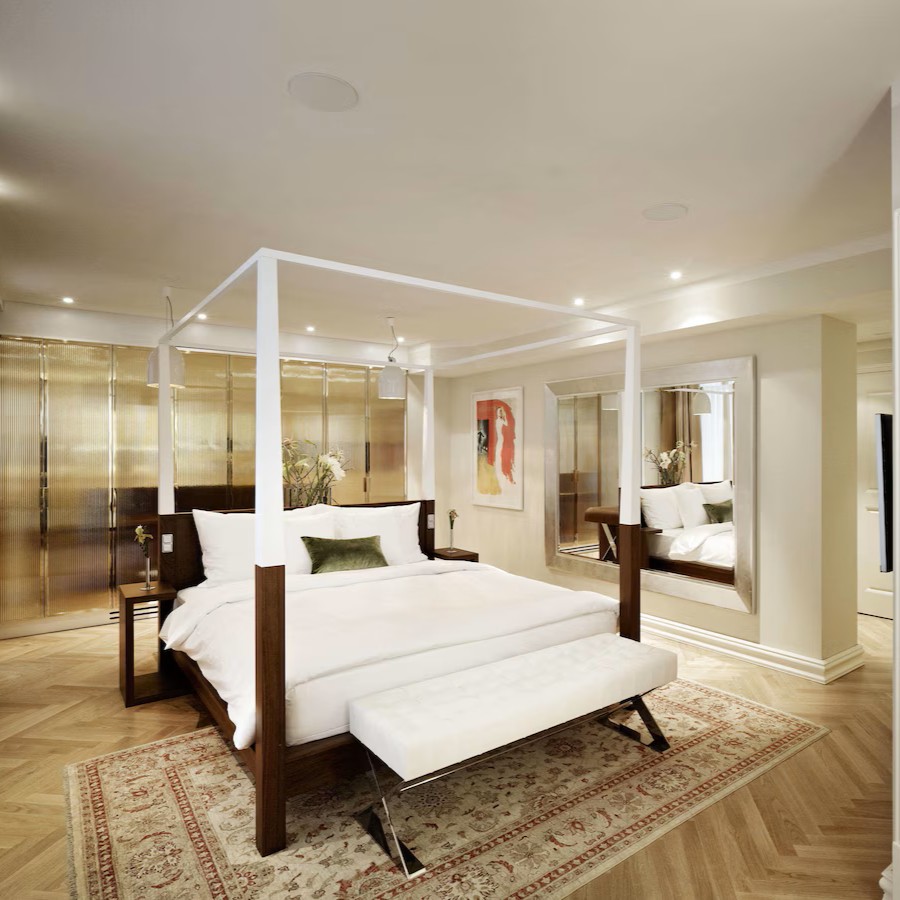 The building is classic enough, dating back to 1872, but the interiors, by the Philippe Starck–spawned Yoo design group, are contemporary through and through. The whimsy is kept relatively contained, manifesting itself mainly in the occasional graphic flourish — in general you’re in for parquet floors, luxe finishes, and some memorable modern furnishings. A fully equipped spa and fitness center and a casual yet stylish restaurant round out the Sans Souci’s offerings.