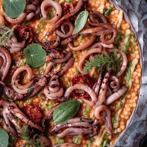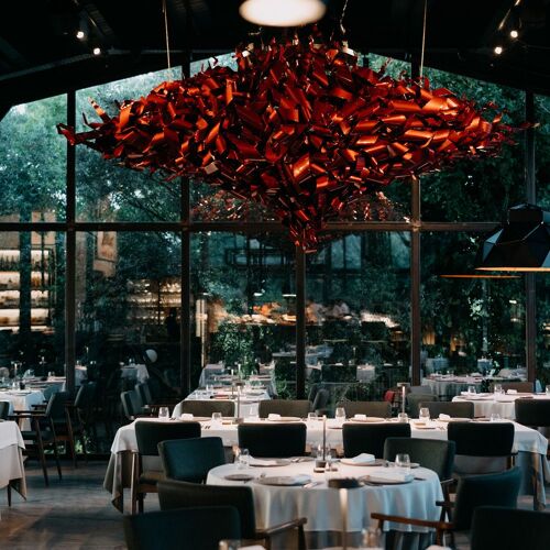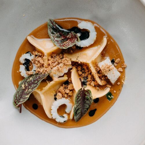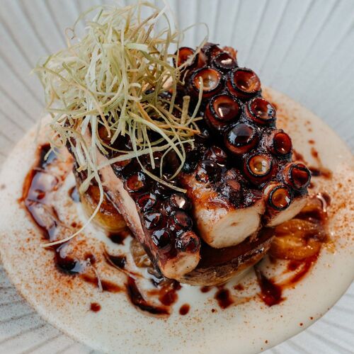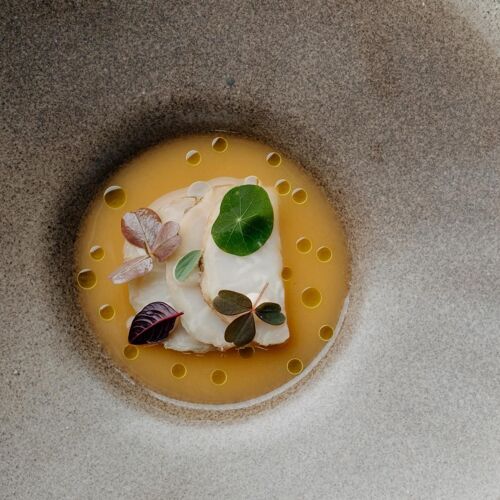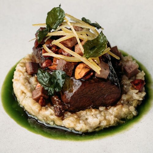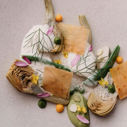 A winding road takes you to the top of the hill, from where you get a first impression of Osman Sezener's world. Once you arrive at his family estate, you trade the view of olive trees and vines for his impressive vegetable garden. A visit to the garden is an absolute must, as is an overnight stay in one of the guestrooms. This trendy glasshouse restaurant is surrounded by breathtaking natural beauty, and the chefs' passion and energy is infectious. The restaurant grows about half of its ingredients independently and sources other produce from nearby suppliers. Chef Sezener works with a supply radius of about ten kilometres. The commitment to sustainability and local sourcing is as much part of this restaurant's identity as its focus on open-fire cooking. The chef cooks on a charcoal grill to bring out the natural flavours and textures of his ingredients. The cuisine is simple and unpretentious, sometimes even bordering on the rustic, but it is always full of flavour. Take the smooth mashed potatoes with caramelised onions, the perfectly grilled squid glazed with a braised onion jus, and a tuile of the remaining parts of the squid sprinkled with fresh herbs. This cuisine is personal. The way the robust, tender beef rib is balanced with textures of celeriac is testament to the chef's understanding of the ingredients and flavours that nature yields (there is both a vegetarian and non-vegetarian set menu).