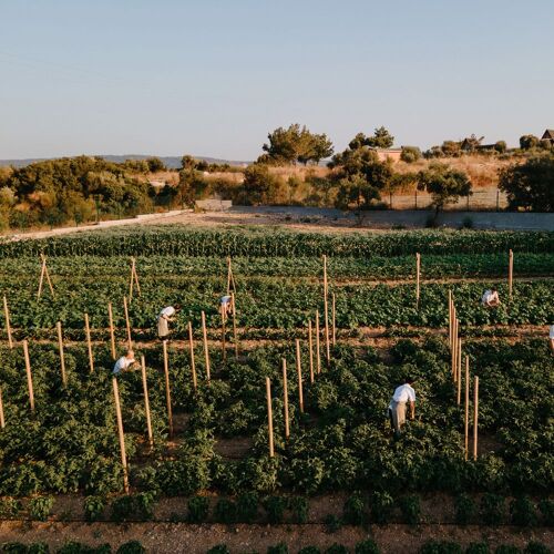 "OD Urla is a restaurant that reflects the local values of the Aegean, focusing on sustainable and ethical production. We grow seasonal vegetables, fruits and edible plants in our own fields, we include olive oil produced from olive trees and milk, cheese and eggs from our farm in our menus. Working with a ‘zero waste’ approach, we utilise every ingredient, contribute to regional employment by collaborating with local producers, and take environmentalist steps for a sustainable future."