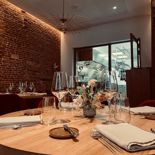 This 1693 edifice adds a contemporary touch to the historic character of En Neuvice lane by way of bare stone walls and modern comforts. The exquisitely presented food is the handiwork of a gifted chef who demonstrates his international eclecticism, delving freely into the establishment’s cottage garden for his fruit and veggies. The accent is on tradition first and foremost.