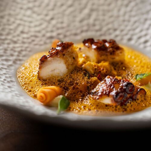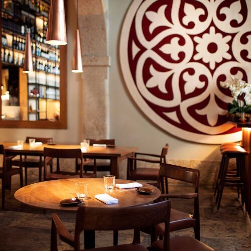 The decor here is contemporary but with lots of character, enhanced by its setting behind the elegant façade of an 18C building that was once the warehouse for the famous Bertrand bookshop, which opened in 1732 and is recognised as the world’s oldest. Henrique Sá Pessoa’s cuisine, which can be enjoyed on two menus (Alma, inspired by the chef’s signature dishes, and Costa a Costa, a tribute to Portuguese fish and seafood), includes dishes such as scarlet shrimp, pumpkin, harissa and black garlic; Portuguese-style baked mullet with grilled sea lettuce and sour pepper; and lamb, red cabbage “migas” and smoked aubergine. The chef himself is a frequent visitor to the dining room, assisting with service and interacting with guests.