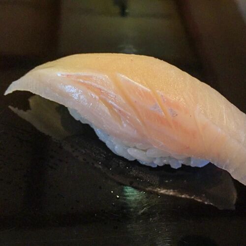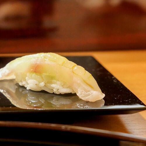 Born into a family that owned a sushi restaurant, the owner-chef helped her father out from a young age. The father noticed how drawn she was to sushi artisanry and provided a guiding hand. She was in her element when training and learned the techniques of those who came before. She starts with white-fleshed fish as it has a lighter taste. The restaurant is named after wasabi grown in a clean environment. Likening herself to wasabi, she put down her roots in Yamato.