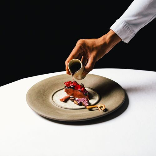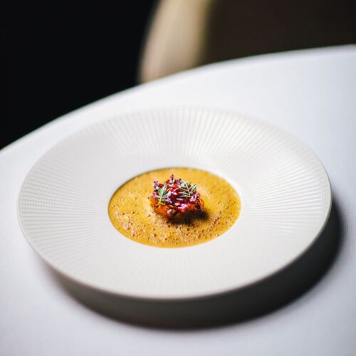 Jurgen van der Zalm has made the kitchen at Vinkeles his own. Having spent years here as a sous-chef, honing his classic culinary skills, he now charts his own course, without breaking with the house style: premium-quality ingredients and complex sauces are still the name of the game. For instance, he glazes ultra-fresh turbot with garlic and pairs it with textures of artichoke, mustard seeds and a potato millefeuille. What truly takes the dish to the next level is the smoked lime sauce underpinned by a robust fish fumet. Chef Van der Zalm is a master saucier, who combines a playful approach to international influences, bold innovation and a respect for tradition in his highly personal creations. In what was once the bakery of this 18C Roman Catholic almshouse, the original wood and stone have been incorporated into the modern interior design. And with an outstanding service team at your side, dining here is an experience to remember!