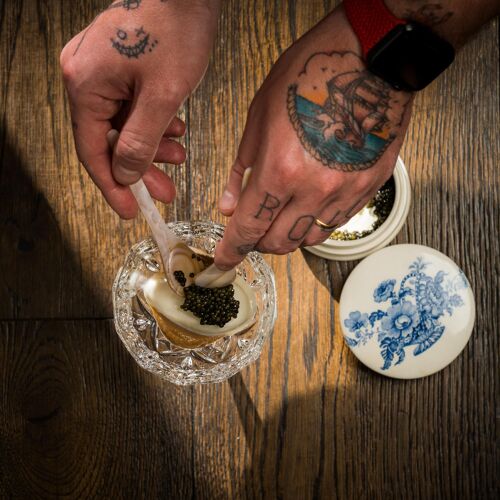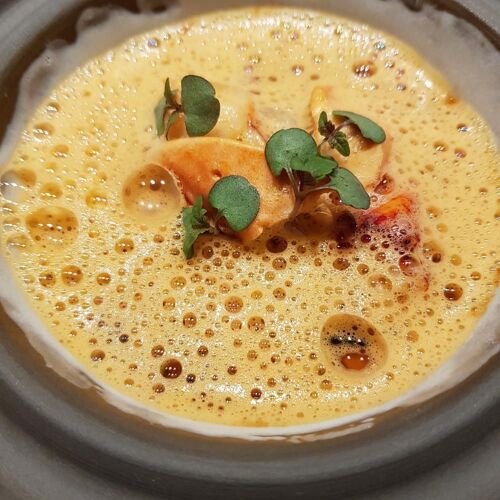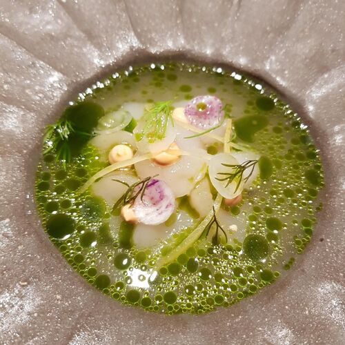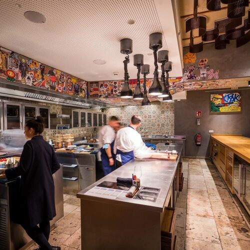 In terms of technical excellence and personality, this restaurant is constantly striving to be different, to challenge the palate of its guests, and to be the benchmark eatery on La Concha bay. Housed in the Villa Favorita hotel, this restaurant is presided over by chef Paulo Airaudo, who hails from Córdoba (Argentina). Here, he conjures up creative cuisine that stands out for its excellent fish and seafood, combining the essence of Basque culinary traditions with subtle Spanish, Italian and Asian influences. The decorative backdrop strikes an aesthetic balance between the classic and the modern, with three large tables and a bar where you can eat while watching the chefs at work – the latter also serve the dishes themselves. The single tasting menu with wine-pairing options (including champagne) and wines by the glass is based around premium ingredients from around the world. As a result, a strong international feel is evident in everything that happens here. We loved how they use every part of the lobster, and particularly enjoyed the combination of Banana/Mole/Rum. Before preparing each dish, the staff show guests the ingredients they will be working with.