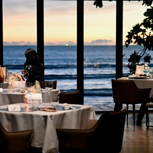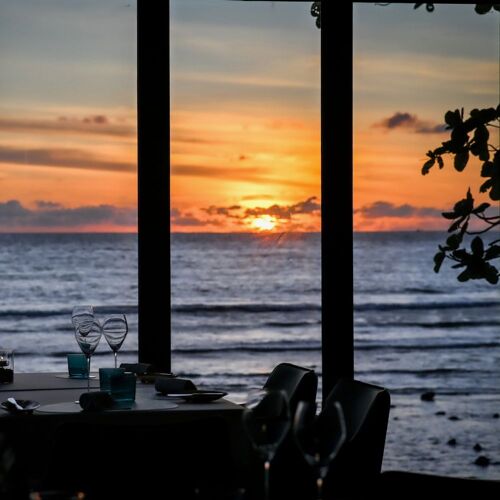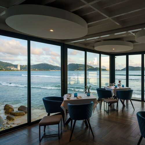 Start with a refreshing cocktail and enjoy the sea breeze on the rooftop before descending to the main dining room for stunning ocean views. The menu combines local ingredients with seasonal European produce, prepared with modern techniques and presented with elegant plating. You might see dishes like tom kha soup or som tam paired with Western elements.