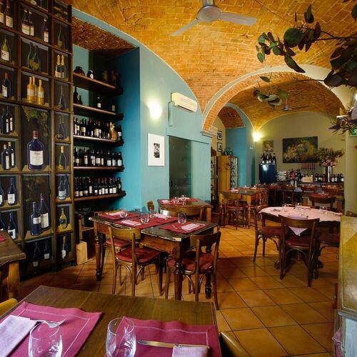 Situated in the heart of town, this secluded, busy and welcoming wine bar serves delicious Piedmontese dishes and a good selection of wines by the glass, chosen from the well-stocked wine cellar on a daily basis. House specialities include braised beef in a Barbera Colli Tortonesi sauce and gianduia chocolate semifreddo with mascarpone cream.