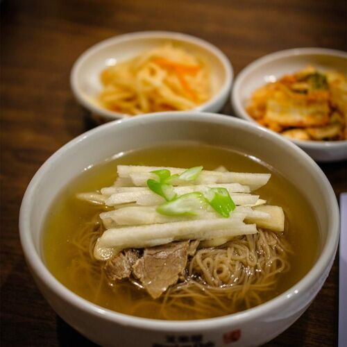 Woo Lae Oak is one of the best Pyongyang naengmyeon restaurants in Seoul, and its reputation and traditions have been upheld since opening in 1946. The broth is what sets this place apart from the competition. It is made by boiling hanwoo foreshank for hours and seasoned with nothing more than salt and soy sauce to create the clean savory flavor that can only be tasted here. The bulgogi, which is another popular dish, pairs well with the cold noodles. It has been maintaining consistent flavors through its many years of service, and exclusively using local ingredients. This historical establishment is packed with diners around the clock.