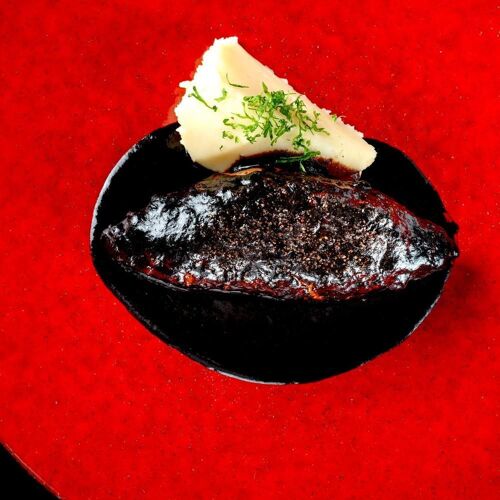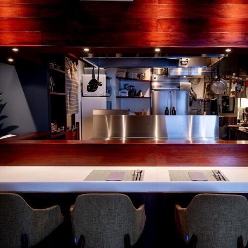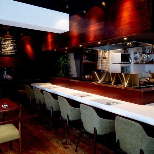 The symbol of YŌSHOKU BISTRO TŌYAMA is a mural of Chef Tadayoshi Toyama at work in the kitchen. The interior is enfolded in warm wood panelling, the blackboard menu a touch of bistro charm. Yoshoku in ‘Yoshoku bistro’ means Western-influenced cooking, and the name references Toyama’s longstanding love affair with Western dishes and his experience studying French cuisine. The accent here is on dishes that pair well with wine. From yoshoku to French, the chef’s time and effort are rewarded with the depth of his menu.