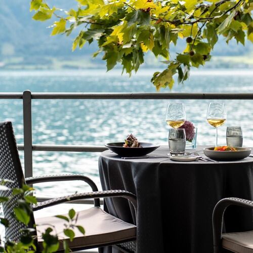 In this gorgeous inn, a winning father-and-daughter team conjures up modern takes on classic dishes. They propose a surprise menu – slightly cheaper at lunchtime than in the evening. Incidentally, they smoke the salmon themselves. If you would like a vegetarian menu, please indicate this when making your reservation. Well-stocked wine list. Tip: Across the road, there is a terrace shaded by plane trees, right by Lake Zug and with a view of the Rigi – in fine weather the sunsets are magical!