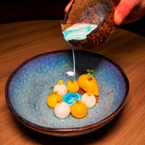 Cette table se niche dans un petit immeuble en pierres locales. L'intérieur évoque une maison forestière : murs en pierre ou vert forêt, plafonds et poutres en bois. Deux frères, l'un en cuisine, l'autre en salle, réchauffent cette maison boisée, dont le nom rend hommage à leur grand-père garde forestier en Espagne. Cette partition gentiment créative fusionne influences locales et ibériques, agrémentées de touches japonaises – pays qui fait rêver cette paire complice. Le « Lagarto » (une pièce de porc ibérique) au barbecue shichirin, fuet et petits pois au ponzu illustre bien cette veine gourmande.