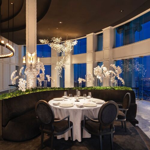 A talented Japanese chef reimagines French cuisine through the lens of his heritage, applying classic techniques from both culinary cultures to top-notch Japanese and French ingredients. The dishes in his refined and varied seven-course menu change with the seasons, each beautifully composed and with a wealth of nuance. Though the panoramic city views are striking, it's the balance of precision and creativity on the plate that make the biggest impression.