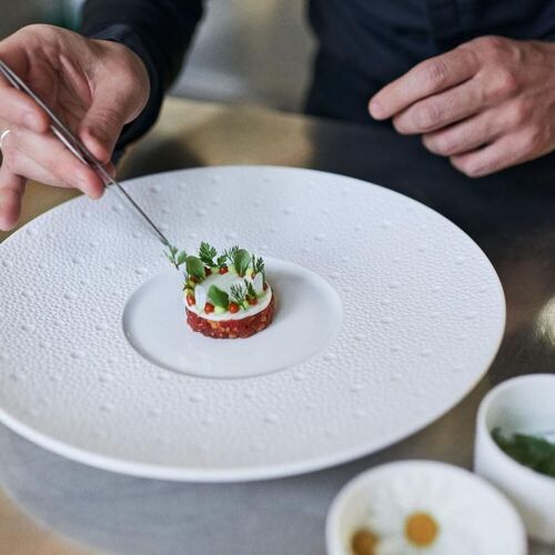 Cet élégant restaurant dédié à la cuisine moderne loge dans l’impressionnant Tschuggen Grand Hotel, perché à 1 800 m. Le jeune chef Marco Campanella et son équipe nous éblouissent avec des mets élaborés, équilibrés et originaux, à la fois robustes et sophistiqués, et révélant des saveurs franches ainsi qu’une belle technique d’exécution. Les sauces sont particulièrement bien travaillées ; goûtez la bisque délicieusement corsée et veloutée, qui rehausse magnifiquement la queue de langoustine à la texture bien ferme. Deux menus sont proposés : « Inspiration » et « Moving Mountains » ; le dernier, entièrement végan, s'inspire des dernières recherches en matière de nutrition. Le service est toujours convivial et professionnel, et la carte des vins est remarquable. A la belle saison, Marco Campanella prend ses quartiers dans les cuisines du restaurant La Brezza d’Ascona.