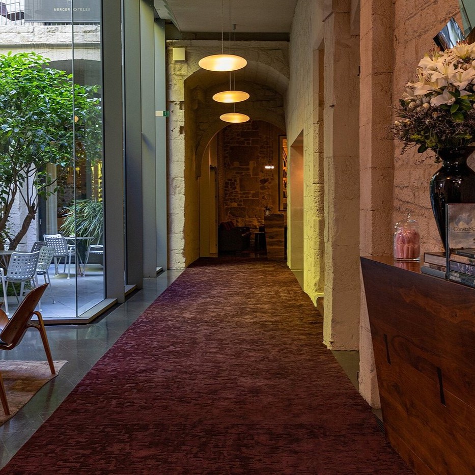 Se promener dans les couloirs du Mercer Hotel Barcelona, c’est un peu comme flâner dans une galerie d’art moderne qui ne fermerait jamais et où l’on vous proposerait de rester dormir, sauf qu’ici, le mobilier design et les impeccables cloisons vitrées sont abrités dans une tour de défense médiévale. D’ailleurs, à peu près tout est médiéval ici, au cœur du quartier gothique de Barcelone, où vous seriez bien en peine de trouver des bâtiments qui ne datent pas de l’époque romaine.
