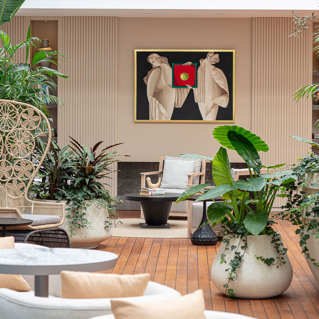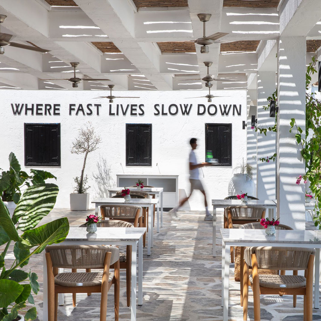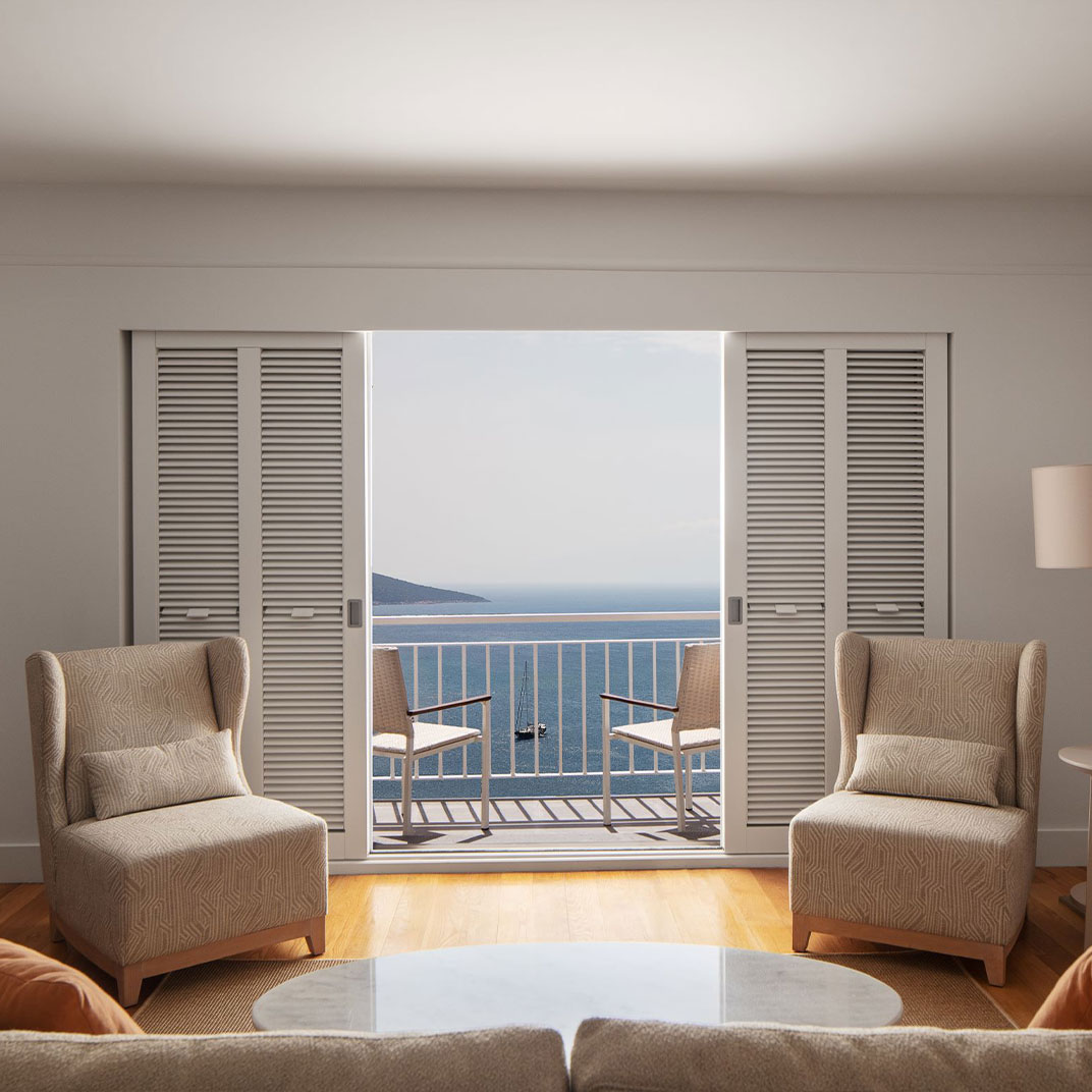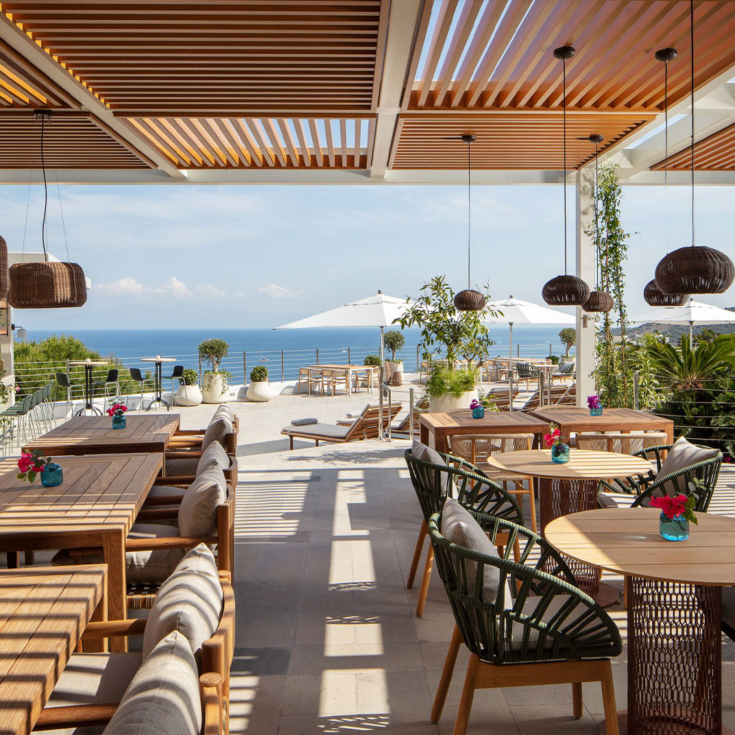 C’est le parti pris par le Doria Hotel, élégant resort contemporain juché sur un promontoire, offrant de superbes vues sur la mer, propice ici à la plongée ou au snorkeling — même si vous y trouverez sûrement moins d’amphores qu’au Musée d’Archéologie sous-marine de Bodrum. Comme l’ensemble du bâtiment, les chambres y sont modernes et dépouillées, avec des jalousies et des voilages blancs, des têtes de lit lazurées et des tableaux colorés. Elles sont réparties autour d’un immense atrium, où logent des salons accueillants, un bar et le restaurant Blu, dont le design affiche déjà une petite note africaine.