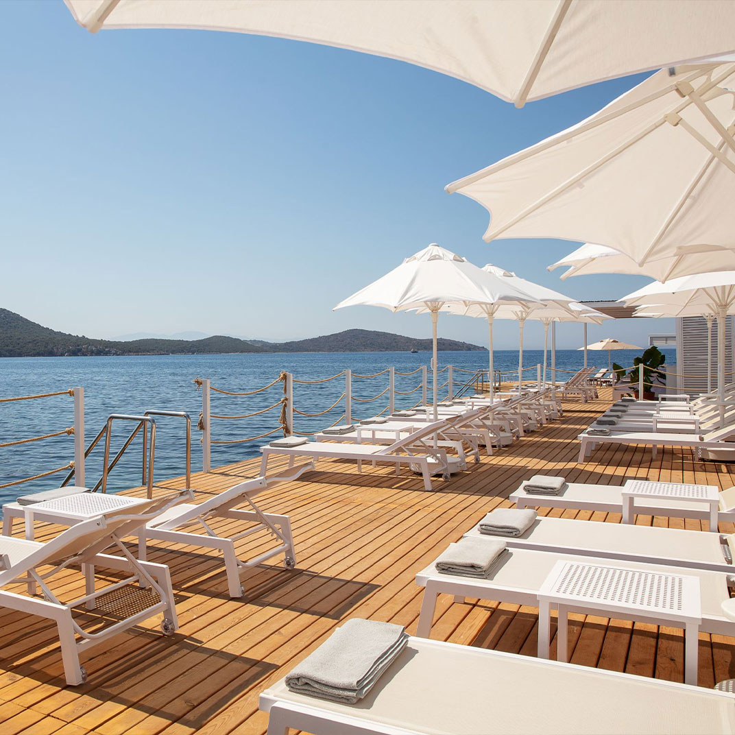 Mais gageons que vous emprunterez nettement plus souvent la navette du Doria, qui vous mène en 5 minutes à sa superbe plage privée. Là, à vous les longues heures de farniente entrecoupées de séances de natation dans la baie. Aux heures chaudes de la journée, les petites cabines blanches sur pilotis sont parfaites pour bouquiner et pique-niquer en toute tranquillité. Et passer, dans la station balnéaire la plus courue de Turquie, de vraies journées de Robinson sur son île…