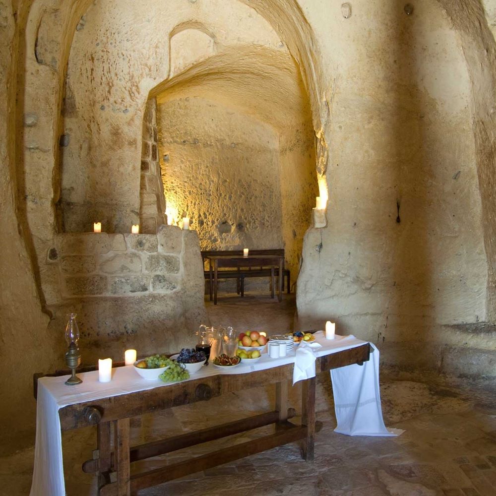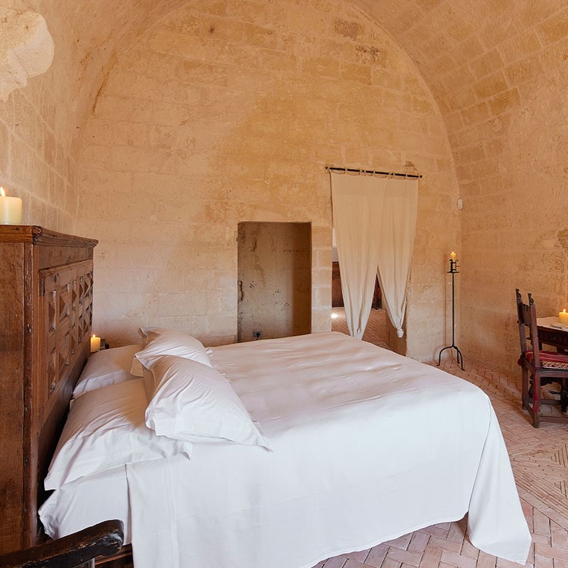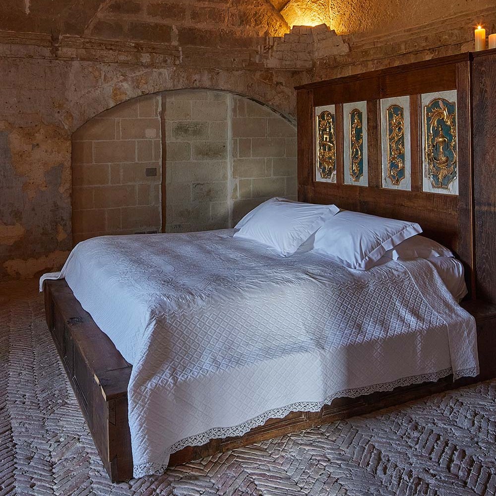 Cette hôtellerie d’un genre nouveau, Margaret Berg et Daniele Kihlgren l’ont amenée à Matera il y a une quinzaine d’années. Tandis que les grottes, longtemps abandonnées aux seuls chiens errants, faisaient leur entrée au patrimoine mondial de l’Unesco, le concept d’albergo diffuso – littéralement, « hôtel disséminé » – a permis d’engager leur réhabilitation sans en compromettre le caractère remarquable. Vous faites alors l’expérience d’une immersion discrète et harmonieuse au sein d’un ensemble architectural pas forcément orienté vers le confort.