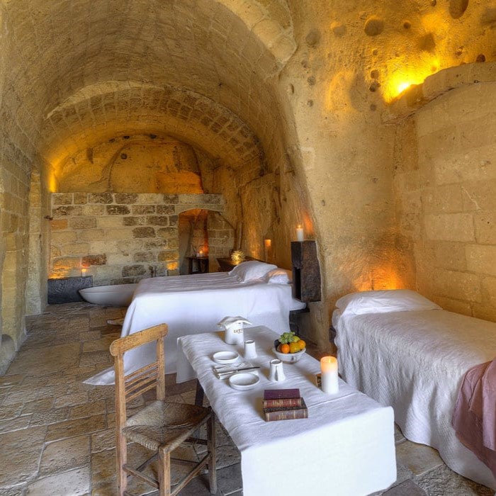 Nichée au creux de la botte italienne, sur les hauteurs de l’ancienne Lucanie, la ville de Matera est de celles qui redonnent brusquement goût à la vie de caverne. Célèbre pour ses Sassi, hameaux troglodytiques que le temps et les hommes ont creusés à flanc de ravin, depuis les bergers du néolithique jusqu’aux moines byzantins, c’est à une certaine idée de l'hôtellerie que la ville doit pourtant d’avoir conservé toute sa beauté curieuse et son silence de sanctuaire, loin des sentiers touristiques balisés.