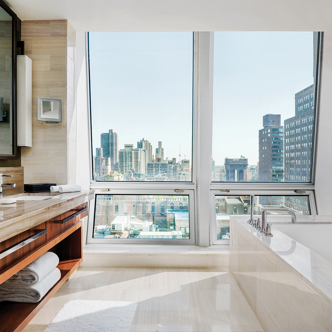 If the towering structure is any guide — that’s meant rhetorically, by the way, of course it’s a guide — then you could safely expect The Langham, New York, Fifth Avenue to be a pretty big deal. And naturally it is. This sixty-story skyscraper joins the Empire State Building on the Midtown skyline, and the architecture, by Gwathmey Siegel & Associates, is suitably monumental.
