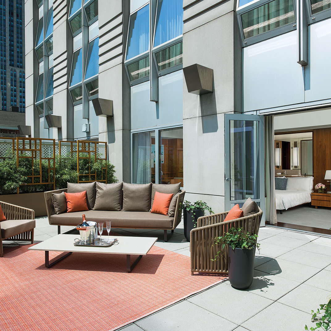 One might wonder if what’s inside quite measures up to what’s outside, but a look at these rich, modern and supremely confident interiors ought to put any worries to rest. To call this one of Manhattan’s more storied neighborhoods would be an understatement — that’s the classic old Tiffany building just across the avenue — but The Langham is more than up to the task. The public spaces don't quite equal the cavernous lobbies of the traditional grand hotels, but if anything that’s a testament to the hotel's residential atmosphere.