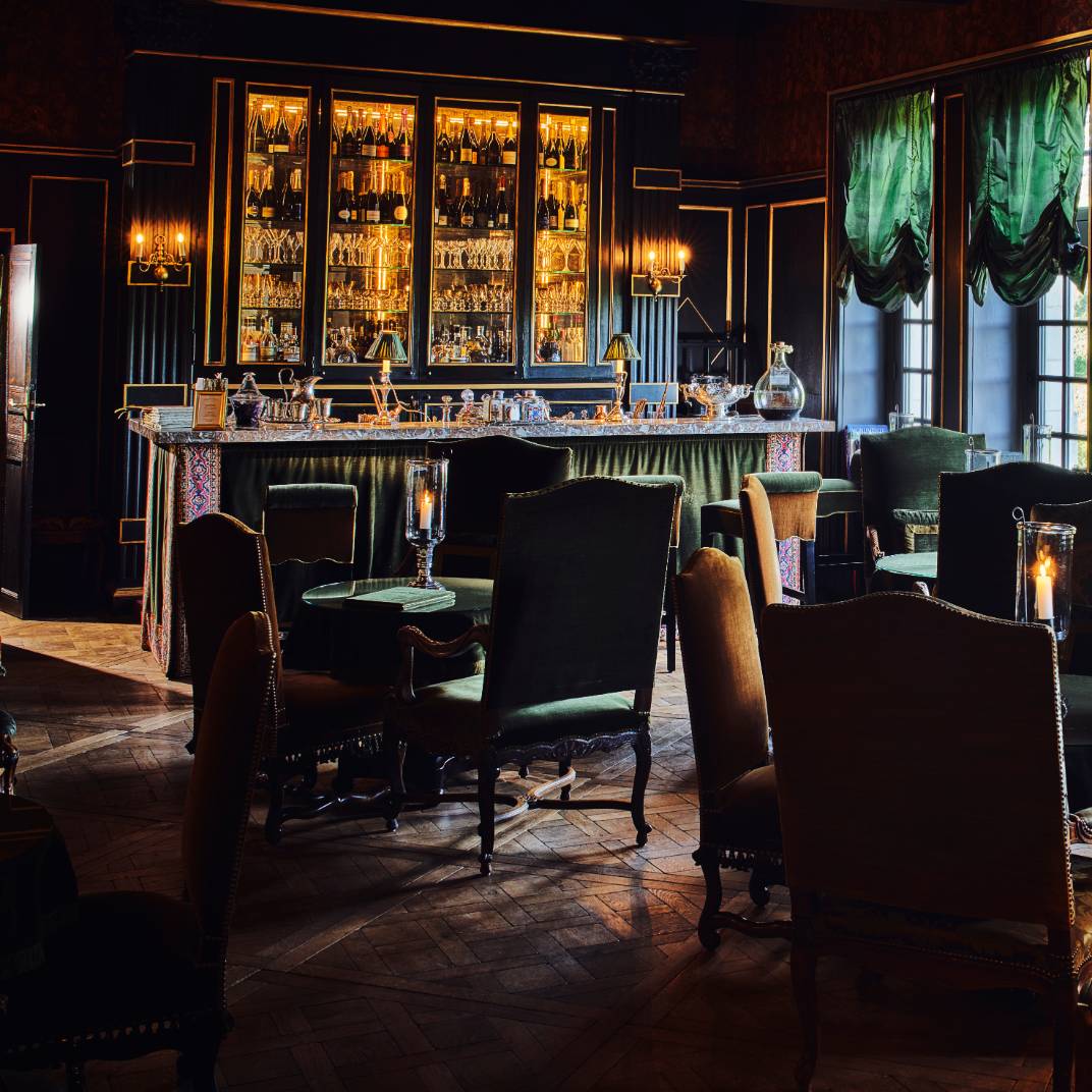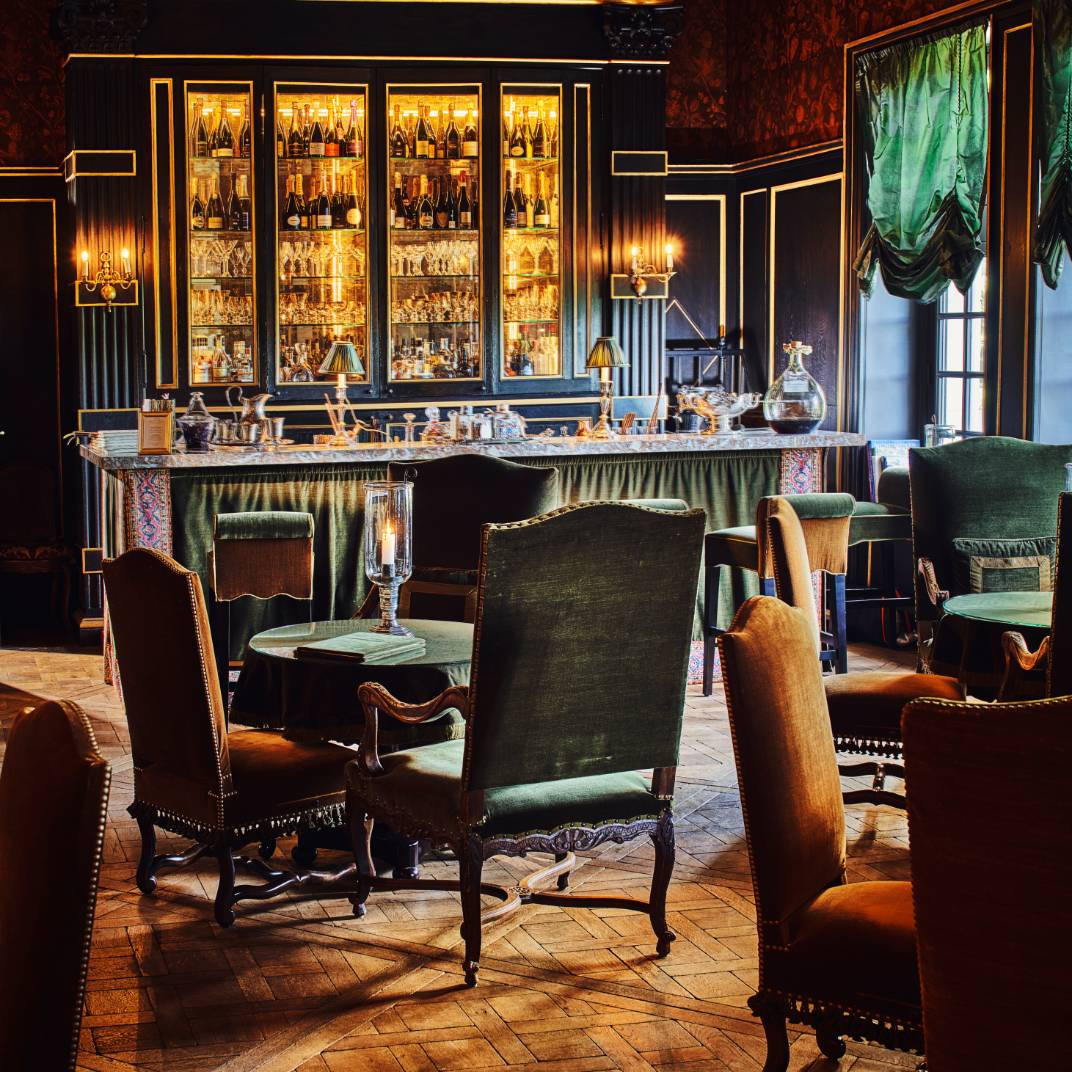Suites are themed and named after key figures in the life of the so-called Sun King, including one inspired by Marie-Antoinette’s boudoir. While each is unique, all are opulent and theatrical, with classical details like heavy drapery, velvet furniture, rich wood paneling, gilded mirrors, fireplaces, chandeliers, and Carrara marble bathrooms with clawfoot tubs. Many suites are in the main château, with others housed in smaller outbuildings set amid rose gardens, orchards, and a park with 200-year-old trees. The hotel’s spa, with a heated pool, is also in a freestanding building. Activities include champagne tastings, outdoor film screenings in the gardens, and self-guided picnic and bicycle adventures through nearby forests and vineyards — dining al fresco, according to the records, was one of the king’s favorite pastimes.
