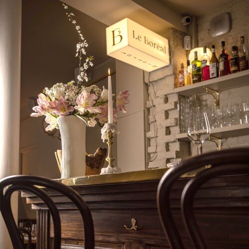 À l’angle de la rue du Pôle-Nord, la cheffe Philippine Jaillet et son compagnon Charles Neyers vous accueillent avec chaleur dans un troquet typiquement parisien, avec cuisine ouverte, comptoir en laiton et inoxydables chaises Thonet. Côté assiette, leur boussole gourmande ne perd pas le Nord : de beaux produits frais ancrés dans la saison, travaillés dans l’air du temps avec une touche créative et décalée, à l’image de ce chawanmushi de champignons, praliné de cèpes, pickles et champignons grillés, ou encore de ce pithiviers végétarien au céleri-rave.