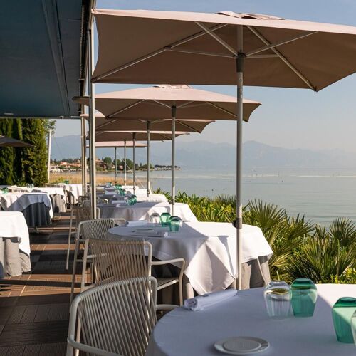 Having trained with Antonino Cannavacciuolo, young chef Vincenzo Manicone has, with his wife Sara, embarked on a new venture in this elegant restaurant with a glass-fronted dining room and a terrace suspended between the lake and the sky. Showcased on tasting menus and an à la carte, the chef’s cuisine demonstrates a maturity that pays close attention to colour and flavour, with beautifully presented dishes prepared from top-quality, well-balanced ingredients. Also evident is the aim, currently in vogue, of reducing food waste by using every single part of the animal (as in the case of the excellent amberjack, curly salad and sea urchin dish that we very much enjoyed). In summer, we recommend requesting a table at the front of the terrace, right over the lake.